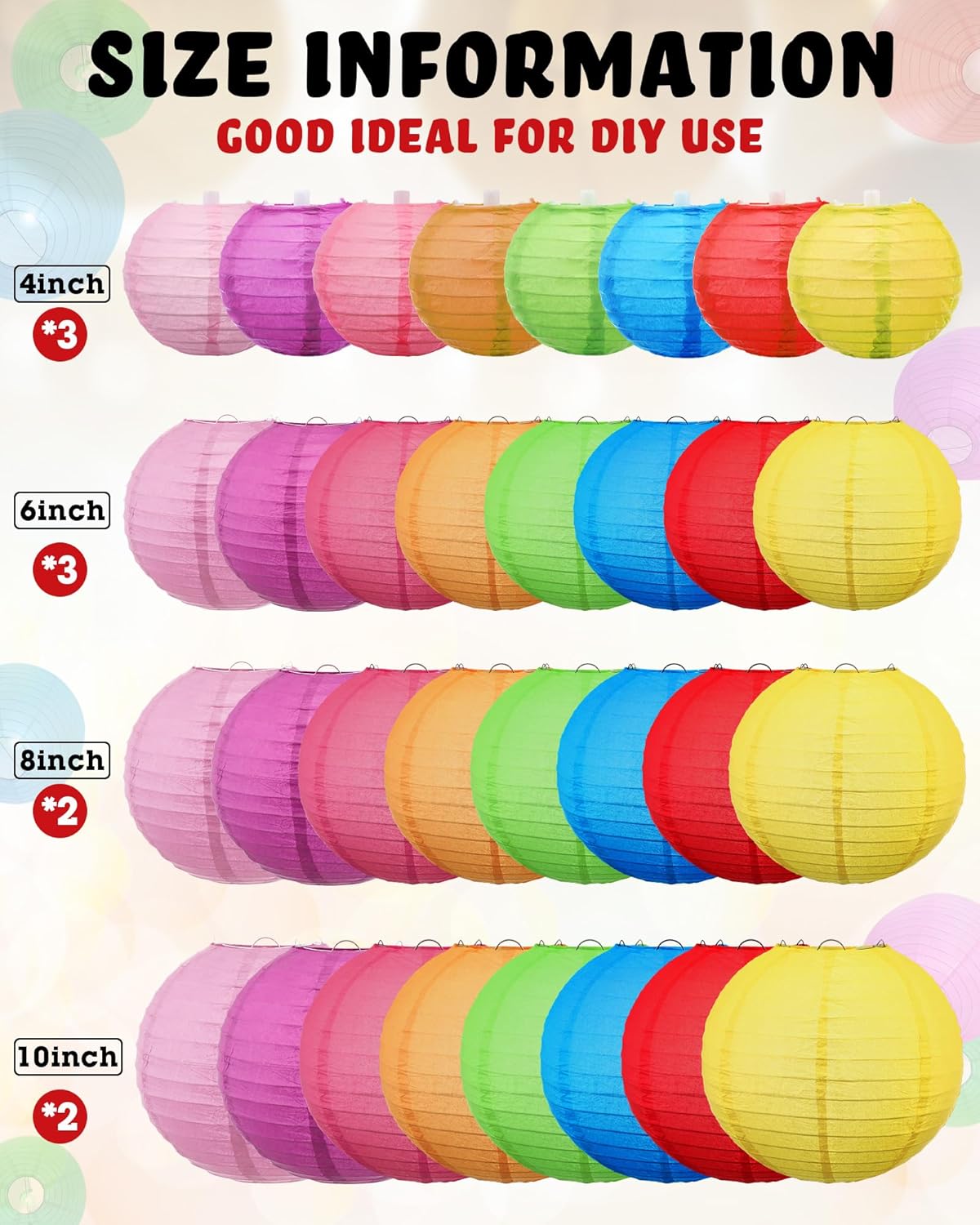 Introducing the Treela 80 Pcs Paper Lanterns – the perfect addition to elevate any celebration or event! These Chinese and Japanese inspired paper lanterns are a must-have for decorating classrooms, parties, weddings, and more. With a variety of sizes including 4”, 6”, 8”, and 10”, and an array of vibrant colors, you can mix and match to create a stunning visual display.